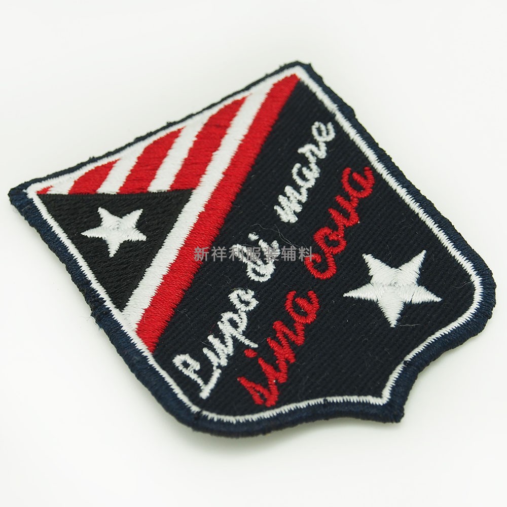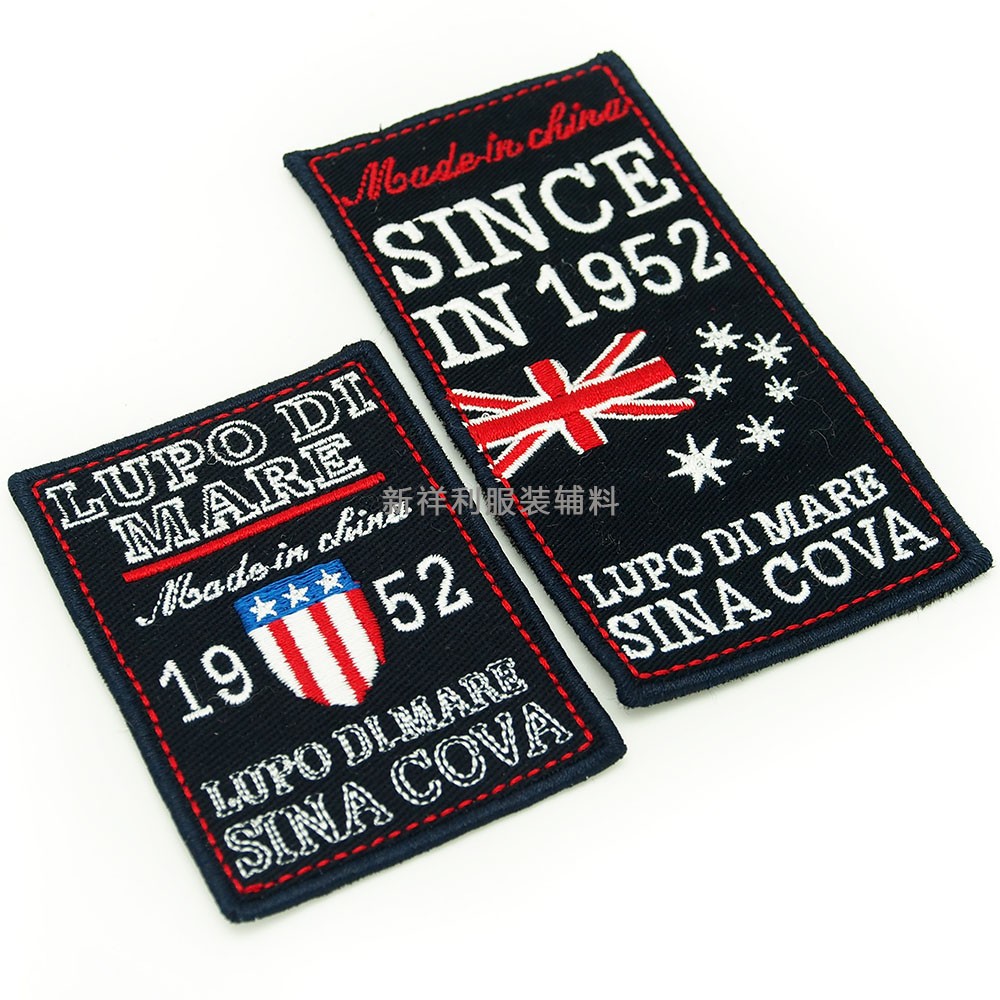 厂家批发绣花标电脑刺绣布贴服装鞋帽绣花商标魔术贴自粘标贴