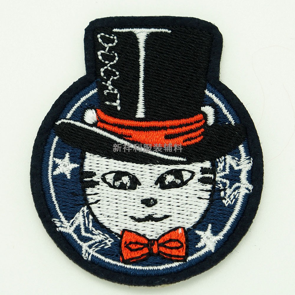 厂家直销可爱小猫熨烫刺绣徽章布贴 卡通diy电脑刺绣布贴来图设计