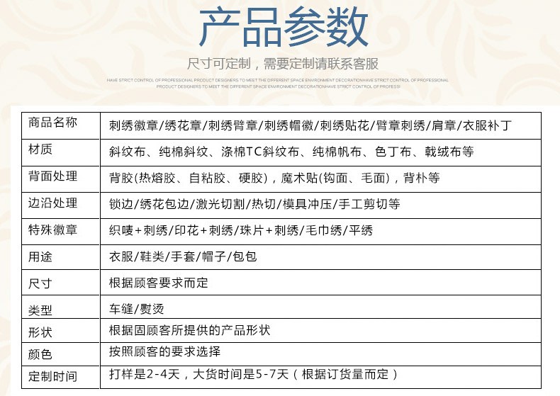 联系客户,定制图案,刺绣工艺、款式、尺寸、数量等。