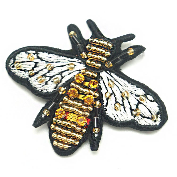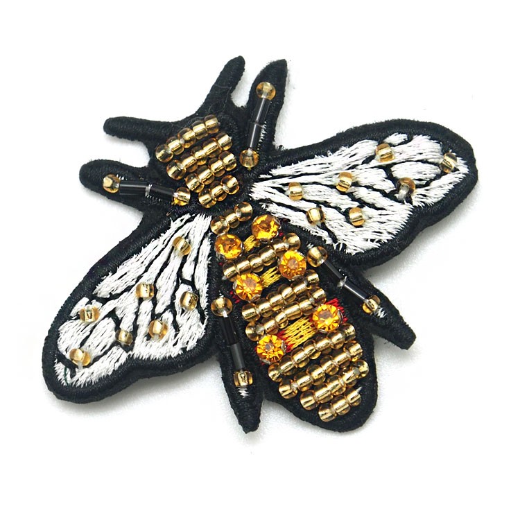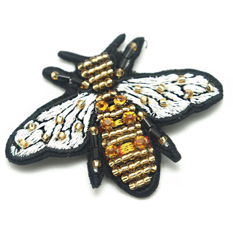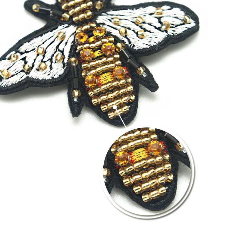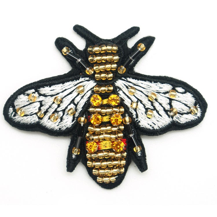厂家直销立体手工钉珠绣印度丝蜜蜂布贴香蕉黄色视频在线观看服装鞋包批发
