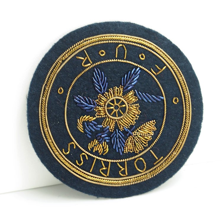 印度丝绣花章,早起源于印度,故又称印度丝徽章、铜丝徽章、弹簧丝徽章、印度绣花章、金属刺绣章等,采用印度特有的金属线为主要材料,并用传统的手工艺绣花,一针一线刺绣而成。其手工精细,令人叹为观止,绣出来的产品高档华丽,层次分明。