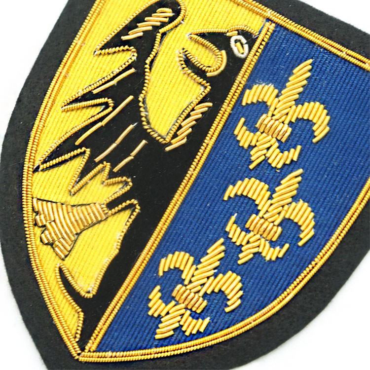 印度丝绣花章,早起源于印度,故又称印度丝徽章、铜丝徽章、弹簧丝徽章、印度绣花章、金属刺绣章等,采用印度特有的金属线为主要材料,并用传统的手工艺绣花,一针一线刺绣而成。其手工精细,令人叹为观止,绣出来的产品高档华丽,层次分明。
