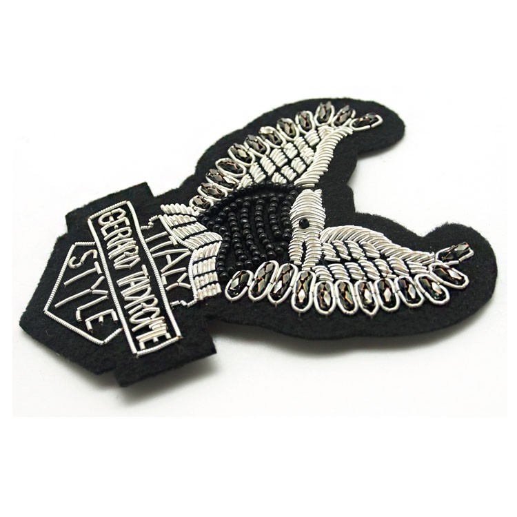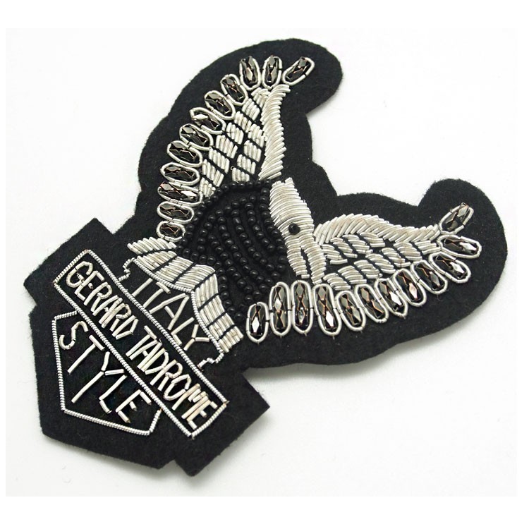 印度丝绣花章,早起源于印度,故又称印度丝徽章、铜丝徽章、弹簧丝徽章、印度绣花章、金属刺绣章等,采用印度特有的金属线为主要材料,并用传统的手工艺绣花,一针一线刺绣而成。其手工精细,令人叹为观止,绣出来的产品高档华丽,层次分明。